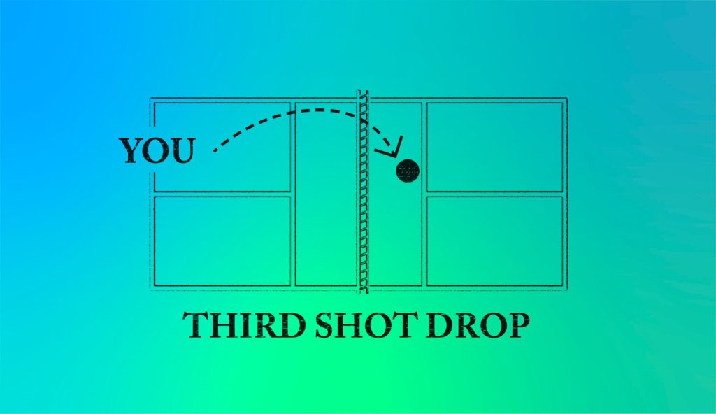 Third Shot Drop đến từ đội giao bóng là cú đánh nhẹ, thấp, thường thực hiện ở cuối sân. Nhằm đưa bóng rơi mềm mại vào khu vực “Bếp” của đối phương